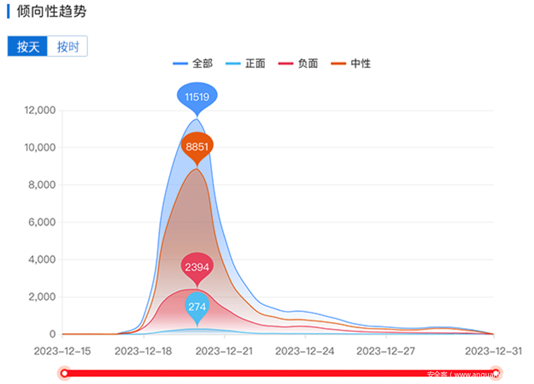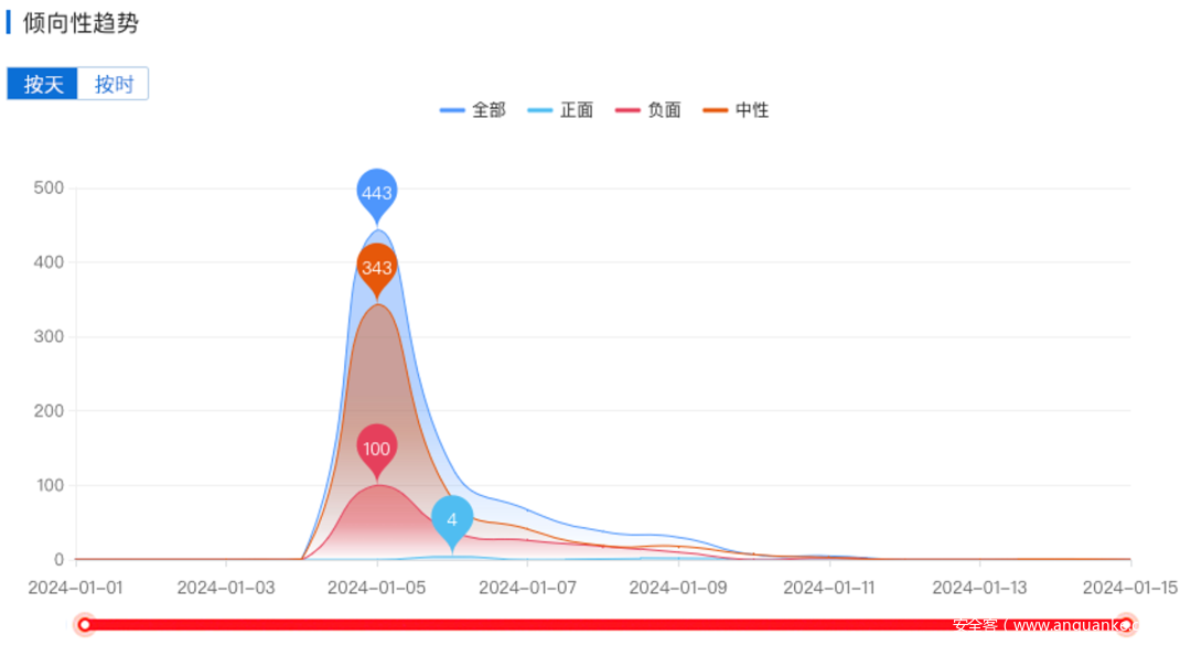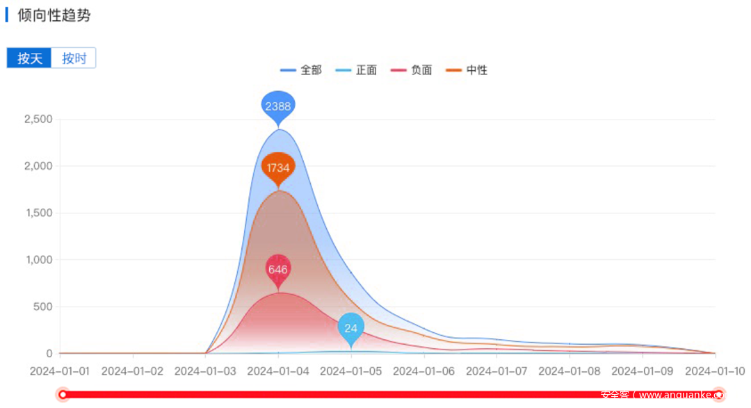 该事件负面舆情占比达到 24.79%,正面舆情占比仅为 2.58%。但由有关部门和冰雪大世界的迅速处置,赢得了广大游客的好感。