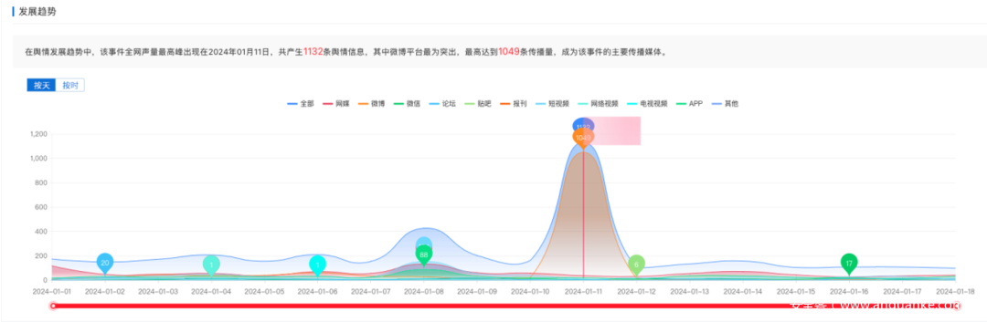 24 小时监测属地内的互联网全量信息,集中展示涉事信息,重点舆情实时预警,全面掌握舆情事件发展态势。