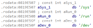 不过勒索软件还是对一些系统关键目录进行了规避,如:/proc、/boot、/sys、/run、/dev等目录。
