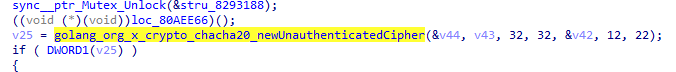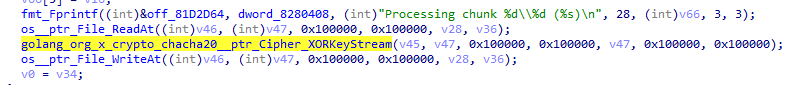 随后,自然也是调用ChaCha20对称加密算法对文件进行加密,用对称加密算法来对文件实施加密属于目前主流勒索软件的“惯例”,这样做主要是为了保证加密的效率。