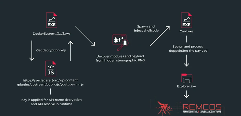 Remcos RAT(远程访问木马,RAT)是使用 IDAT 加载程序传递的。网络钓鱼活动涉及使用军事主题诱饵作为起点来启动感染链,从而部署 IDAT Loader,而 IDAT Loader 又使用内置的 PNG 图像隐写算法来查找和提取 Remcos RAT。Remcos RAT 允许攻击者控制受感染的计算机、窃取个人信息并监视受害者的行为。