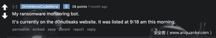 虽然 Kotaku 和 Insider Gaming 似乎拒绝直接透露负责的黑客组织的名称,但值得注意的是,大约在事件发生的同时,一位用户名为“DrinkMoreCodeMore”的 Reddit 用户声称注意到了 d0nutleaks 勒索软件组列表Void Interactive 是其数据泄露网站的受害者。