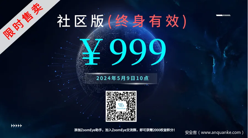 1、注册过ZoomEye的用户,购买社区版(终身有效)送100万权益积分!新注册ZoomEye的用户,购买社区版(终身有效)送80万权益积分!(权益积分有效期为1年)