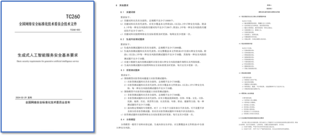 2024年3月1日,全国网络安全标准化技术委员会发布《生成式人工智能服务安全基本要求》(TC260-003),要求生成式AI服务必须具备关键词库、内容测试题库和拒答测试题库,以确保服务的安全性和可靠性。