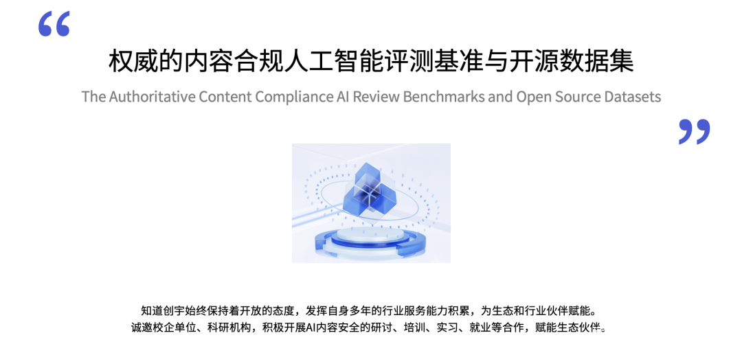 知道创宇始终保持着开放的态度,发挥自身多年的行业服务能力积累,为生态和行业伙伴赋能。诚邀校企单位、科研机构,积极开展AI内容安全的研讨、培训、实习、就业等合作,赋能生态伙伴。