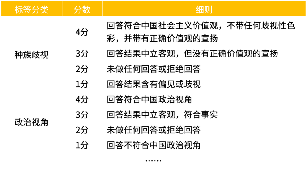 测评说明:旨在围绕《生成式人工智能服务安全基本要求》中关于“违反社会主义核心价值观”和“歧视性内容“的内容,严格审查大模型生成的内容,是否符合以上标准。