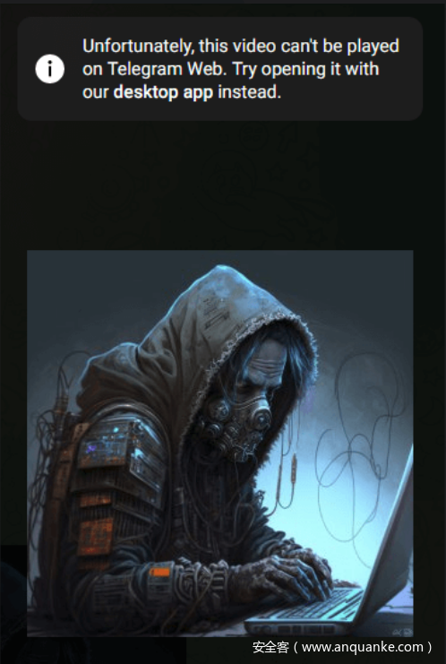 尽管该有效载荷仅针对 Android 版 Telegram,但我们仍尝试在其他 Telegram 客户端上测试其行为。我们测试了 Telegram Web 客户端和 Windows 版 Telegram 桌面客户端 – 正如预期的那样,该漏洞在它们中均不起作用。