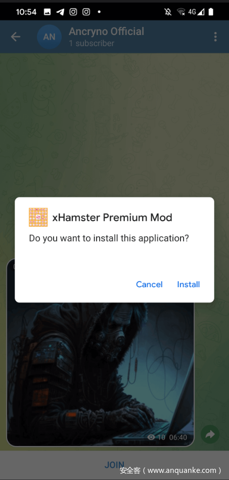 然而,如果用户点击显示消息中的“打开”按钮,他们将被要求安装伪装成上述外部播放器的恶意应用程序。如图5所示,在安装之前,Telegram会要求用户启用未知应用程序的安装。