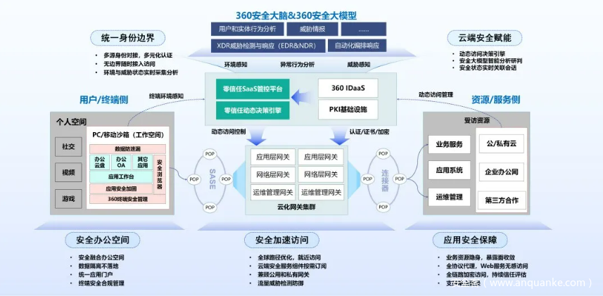 2015年起,360集团面对公司内部数万终端及数十万业务资产的大规模访问需求,持续打磨和升级自身零信任能力,先后经历建设统一身份网络基础设施->基于SSL隧道SDP安全架构->生态分支接入SASE化基础设施SaaS化->建设零信任安全办公协同平台几个重要发展阶段,并于2022年协同360企业安全云正式推出零信任安全访问SaaS服务。