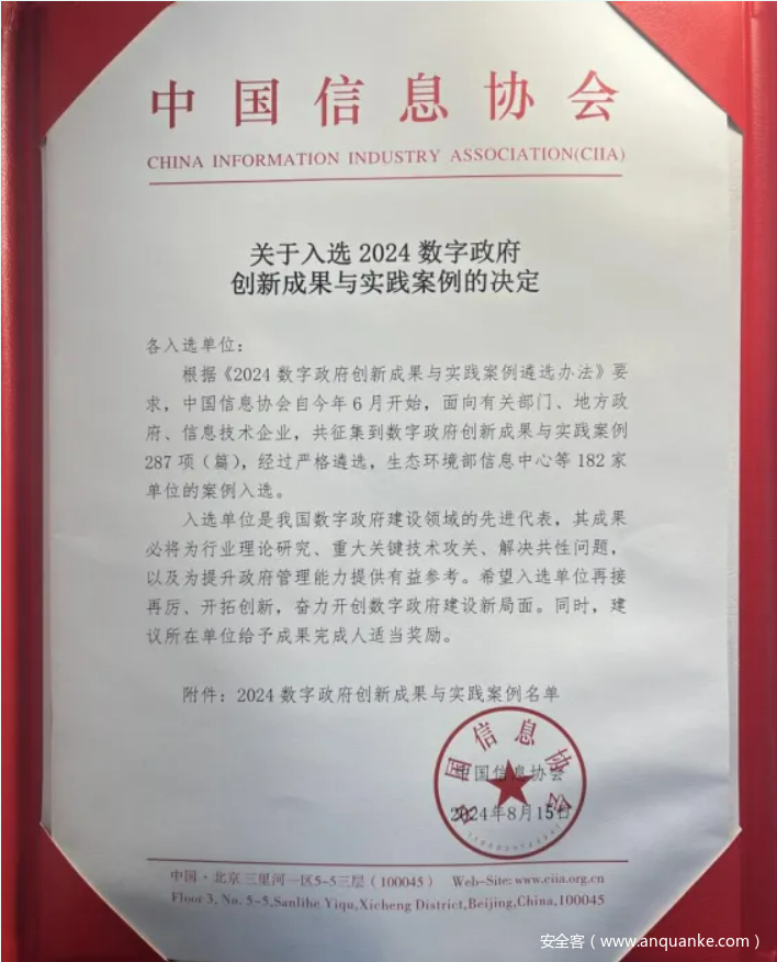 近日,2024数博会“数字政府”交流活动在贵阳成功举办。活动现场,“2024数字政府创新成果与实践案例”评选结果揭晓,由360数字安全集团承建的朝阳区政务网络安全保障体系建设项目,凭借其优秀的顶层设计、技术架构、大模型创新应用等,从众多参评项目中脱颖而出并荣获表彰,树立了北京市乃至全国数字政府建设的新典范。在数字化转型加速的今天,数字政府成为提升公共服务效能的基石,其安全与稳定至关重要。作为重要的数字政府基础设施,朝阳区政务网络安全保障体系建设项目首次将360安全大模型深度融入政务网络安全管理体系,创新性地构建了“安全大模型赋能、智能协同防御”的数字政府新体系,以云、边、端、应用的全方位技术架构,保障了朝阳区政务网络及“城市智慧大脑”的安全稳定运行。这一创新模式不仅极大地提升了朝阳区政府安全威胁的识别与响应速度,还实现了安全管理的智能化、精准化,为朝阳区乃至全国范围内的数字政府建设提供了可借鉴、可复制的宝贵经验。