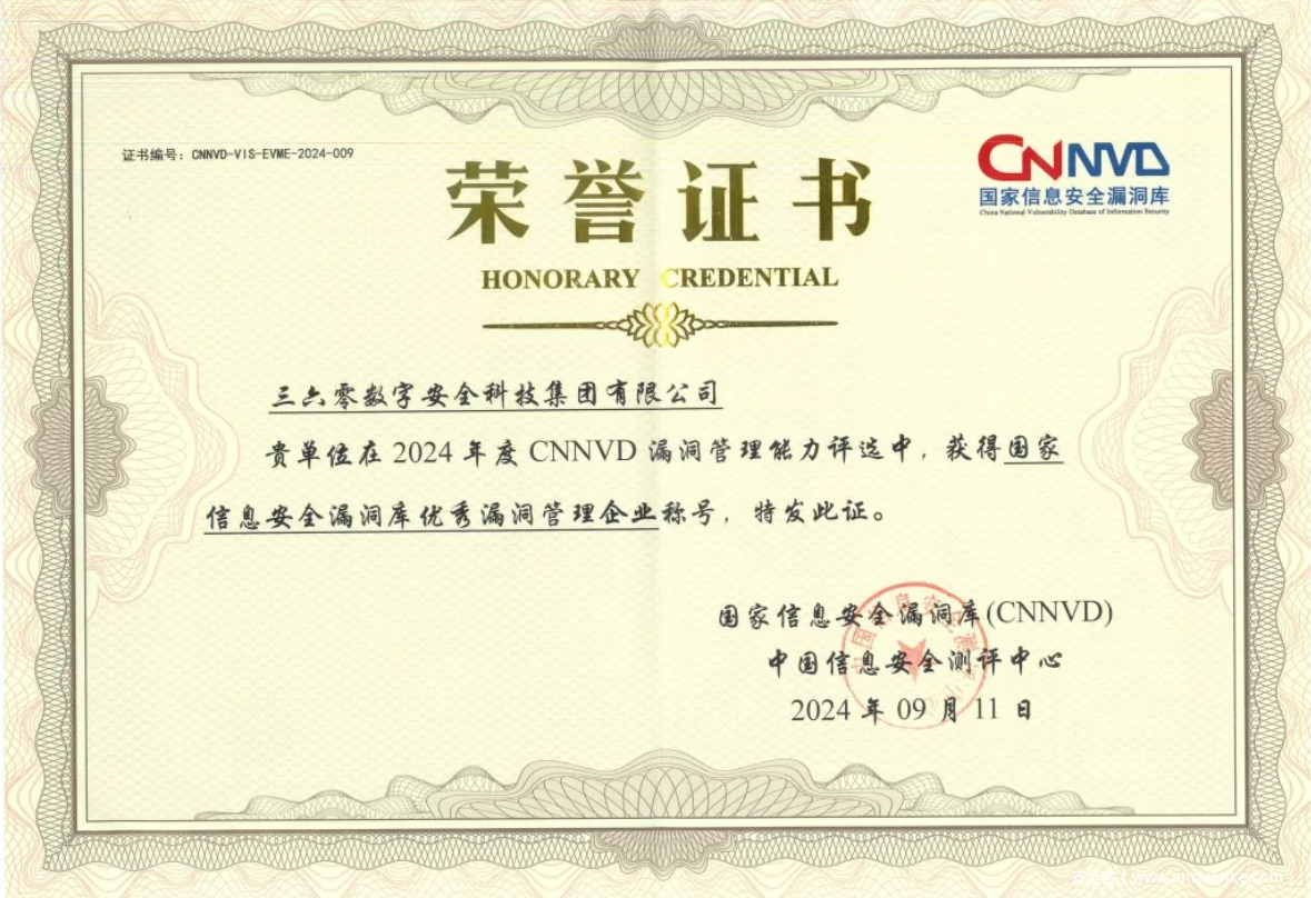 漏洞研究与风险防控能力是智能攻防体系中的关键环节。360作为国内唯一同时拥有数字安全与人工智能双重能力的企业,在360安全大模型的赋能下,不断深化在漏洞研究、风险智能化处置方面的专业能力,并在漏洞挖掘、渗透测试、应急响应等领域积累了丰富的实战经验。同时,360将漏洞研究领域的研究成果和技术能力应用于安全产品和专业服务上,为用户提供了专业、高效的漏洞分析、修补建议及前瞻性的安全解决方案,全面助力用户应对日益复杂的安全挑战。