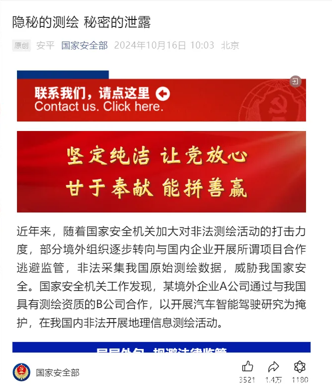 近年来,针对汽车行业的勒索攻击、网络攻击事件频发。此次境外分子以汽车智能驾驶研究做掩护,试图窃取国家关键地理数据的事件,更加清晰的让大众意识到,智能网联汽车的发展不仅改变了人民的出行方式,也影响着国家安全与社会稳定。透过此次事件,我们可以看到几个重要的问题: