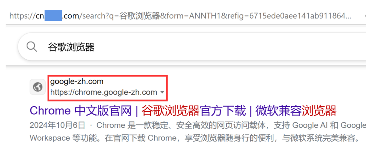 当你在网上搜索“谷歌浏览器”时,下图中的地址可能会排在某搜索引擎结果的第一名,但你可能想不到,这是个带病毒的假官网!