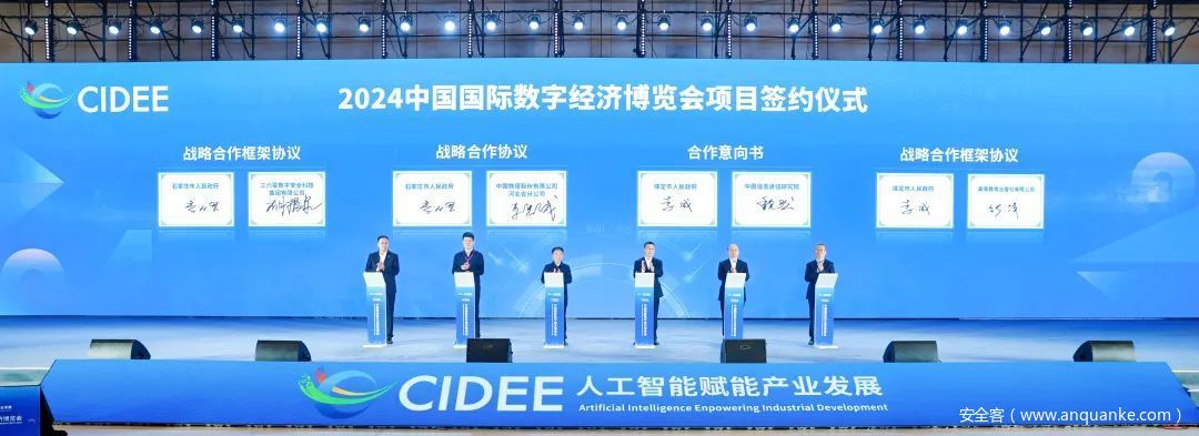 10月24日,2024中国国际数字经济博览会在石家庄(正定)国际会展中心召开。在开幕式上,石家庄市人民政府与360数字安全集团正式签订了战略合作协议,双方将在数字安全能力体系建设、人工智能大模型创新基地建设以及产业生态构建等方面开展全面合作,推动该市跃升为全国数字经济创新发展标杆城市的同时,以石家庄市为核心,辐射河北省全省范围内的数字安全和人工智能产业升级。石家庄市副市长李为军、360数字安全集团总裁胡振泉共同参加了签约仪式。