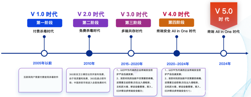 数字化漫长的发展进程中,终端永远是首要的攻击目标。伴随着安全威胁的不断演进升级,终端安全发展经历了4个阶段。