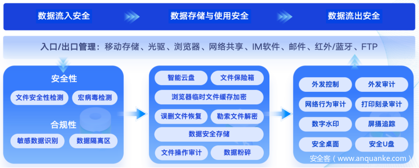 此外,通过在终端上利用敏感数据保护、数据防泄漏、数据外发管控、数字水印、数据存储安全等数据安全保护措施,打造了最快落地、适用范围最广、最有效、性价比最高的防护机制。