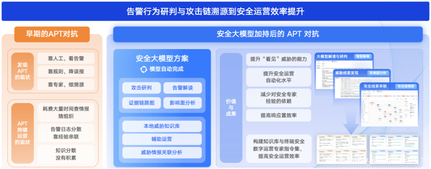 一是“重管理、轻安全”偏离了本质,大多产品的APT实战对抗能力缺乏,“看不见”威胁成为核心挑战;