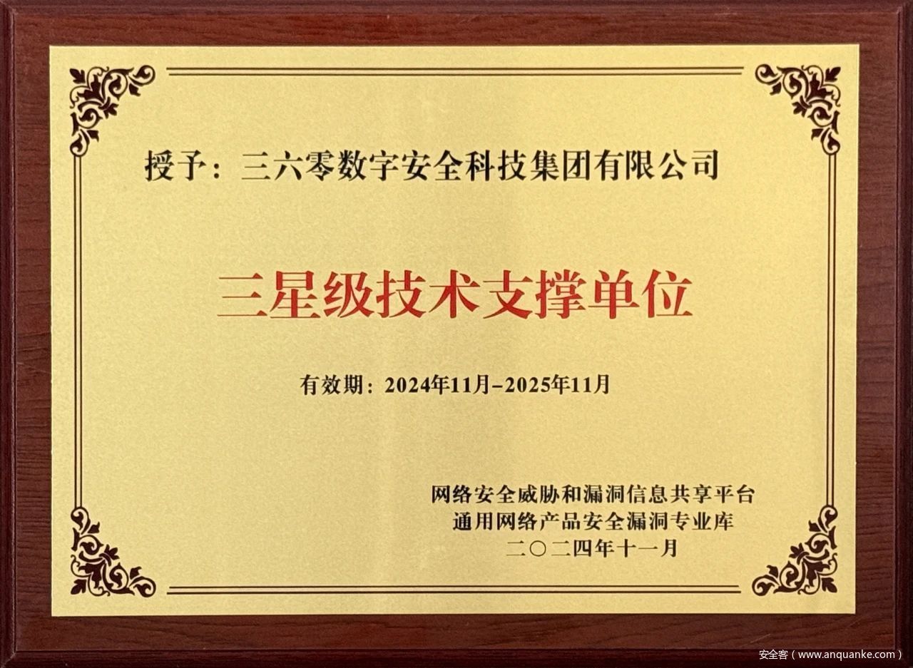 未来,360数字安全集团将依托自身在漏洞安全领域的技术积累,全力支撑NVDB相关工作,助力提高网络产品安全漏洞的研究水平和预警能力,共同推动网络安全生态的健康发展,为构建更加安全、可靠的网络环境贡献力量!