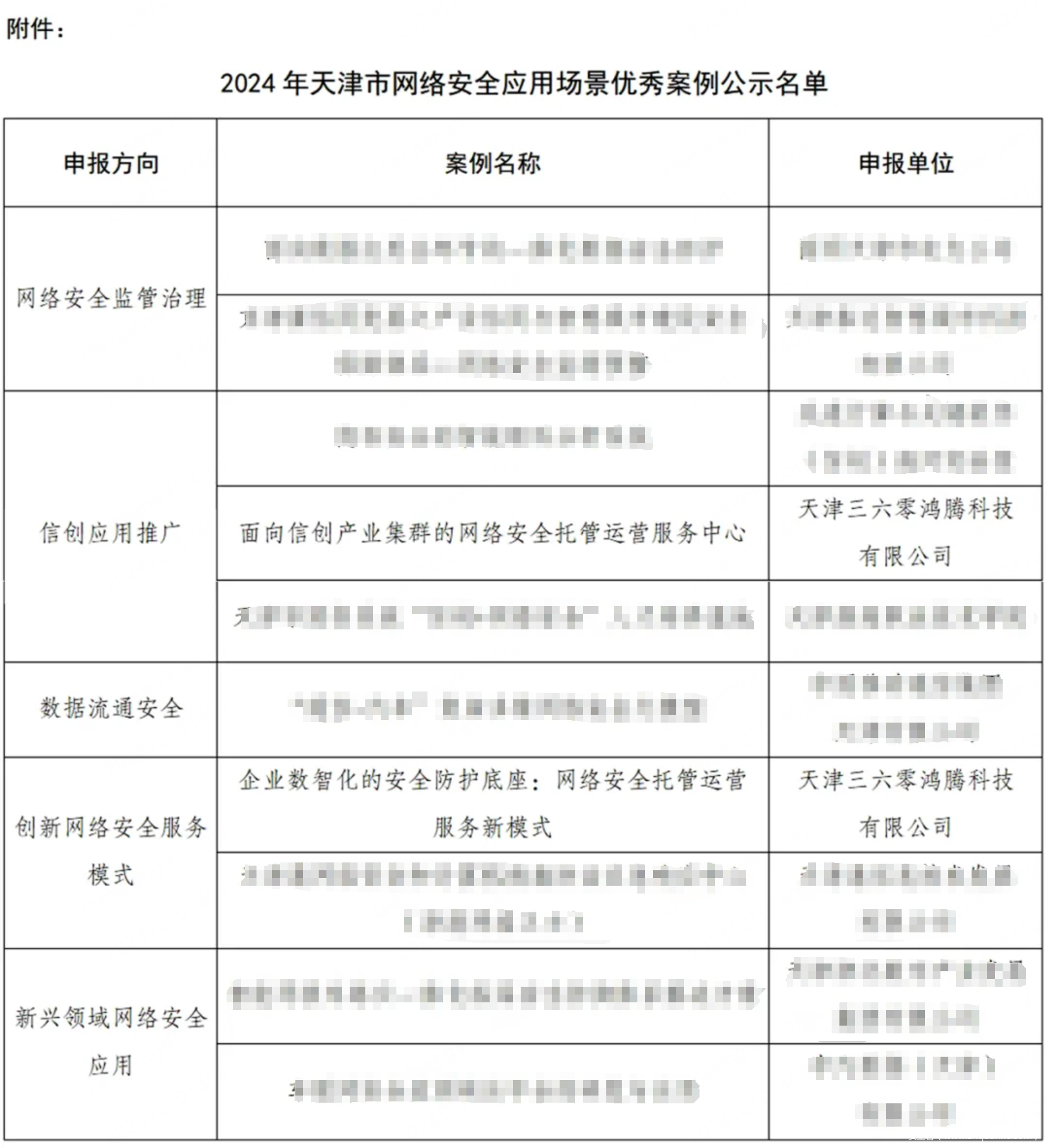 近日,2024年天津市网络安全应用场景优秀案例评审结果揭晓。360数字安全集团凭借《面向信创产业集群的网络安全托管运营服务中心》、《企业数智化的安全防护底座:网络安全托管运营服务新模式》两大案例,成功入选“信创应用推广”与“创新网络安全服务模式”两大类别,成为唯一同时荣获两项殊荣的安全企业。此次入选彰显了360在技术创新与实践应用领域的深厚底蕴,进一步巩固了其在数字安全行业的领导地位。