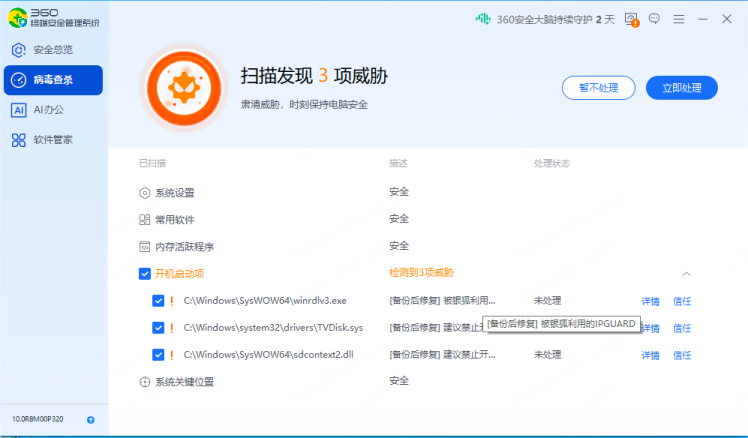 基于多年攻防实战经验和能力,360推出基于安全大模型赋能的银狐病毒防护实战化解决方案。其中360终端安全管理系统作为方案的重要组成,基于320亿样本、4大引擎能力构建了主动防御场景,能够提供入口-浏览器-系统级行为分析能力,为用户构建云地一体主动防御体系,实现针对银狐木马的全方位“绞杀”!360终端安全管理系统针对银狐木马提供先进的防病毒功能,通过云查杀引擎、鲲鹏引擎、QVM人工智能引擎、QEX脚本检测引擎构建的多维智能检测体系,并配合主动防御,支持对蠕虫病毒、恶意软件、APT、广告软件、勒索软件、引导区病毒的检测查杀。四大引擎实现后端病毒特征自动分析提取、抽取出病毒与恶意代码共性特征,建立恶意代码不同族系模型,同时,可将变种繁多的宏病毒置入模拟器执行,通过既定输出参数精确判断宏病毒后执行精确查杀。基于360安全大模型的赋能,360终端安全管系统在银狐木马病毒的分析中,能够通过实时分析网络流量和主机行为日志,识别异常行为和潜在威胁,提供自动响应和阻断措施;同时通过事件关联分析和溯源,能够帮助快速追踪攻击源头。此外,360安全大模型还能够辅助漏洞管理和修复,提升员工的安全意识和防范能力,优化数据备份策略,确保在攻击发生后有效恢复数据,从而全面提高企业的病毒防护能力。360终端安全管理系统具备兼容操作系统CPU保护机制,能采集超越系统层面的各类与安全行为相关的数据,告警高精度、高可信,实现全面遏制银狐病毒的各个攻击路径和手段,如横向渗透、无文件攻击、提权攻击、模拟点击、内核漏洞、RPC漏洞攻击、DCOM攻击、登录凭据窃取等。360终端安全管理系统通过大数据分析、人工智能算法与可视化技术,能够实时捕捉并分析网络中的异常行为,精准识别银狐病毒等潜在威胁。通过威胁大屏,所有安全态势一目了然,无论是攻击源追踪、感染路径分析,还是威胁预警,皆在掌握之中,让安全管理团队迅速响应,有效遏制病毒扩散。