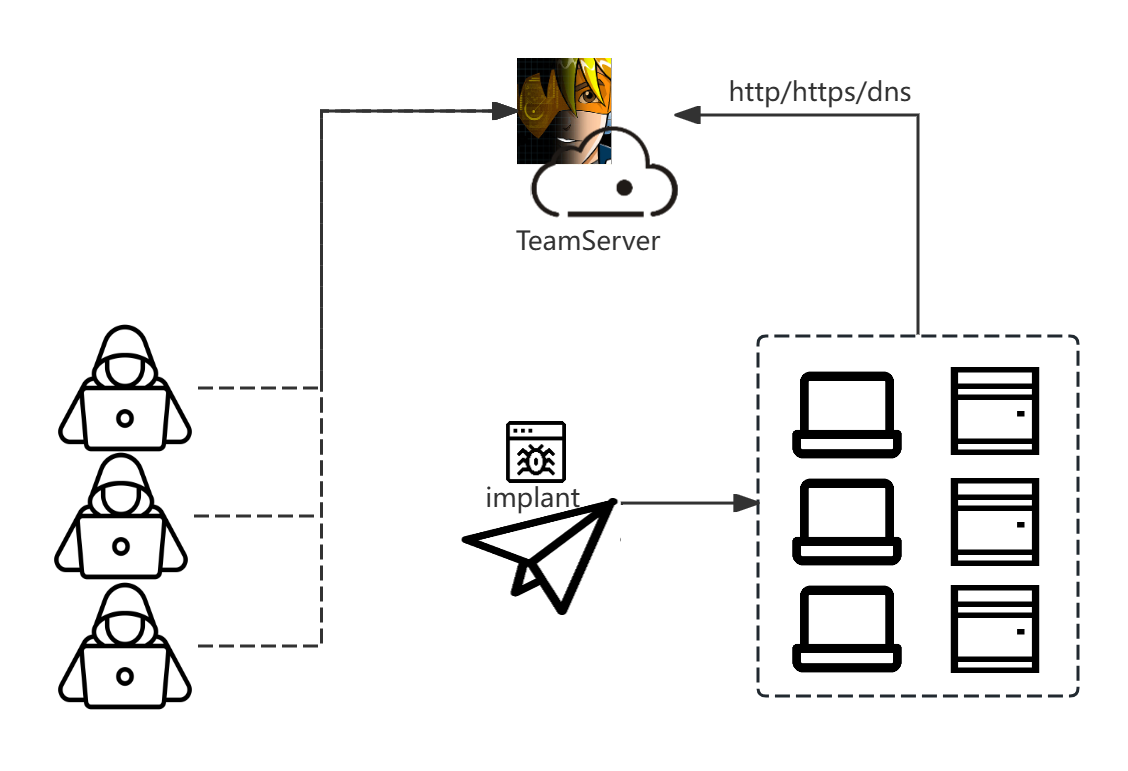 - Implant首先需要与部署在VPS上的TeamServer建立一个安全、可靠的通信通道。这通常通过HTTP、HTTPS或DNS等标准协议实现,以确保数据传输的隐蔽性和稳定性。