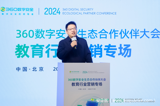 在致辞环节,360数字安全集团副总裁、渠道部负责人陈杨指出,作为我国重要的民生领域和关键基础设施行业,教育行业在数字化浪潮中正经历着前所未有的变革。与此同时,也面临着前所未有的安全挑战,特别是在IT和安全领域。