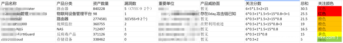 这里可以看到虽然US地区CISCO的产品数量很大,但是由于漏洞获取难度高,我们可以认为其权重是偏低的。