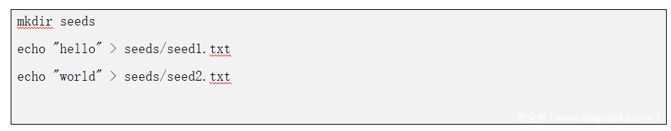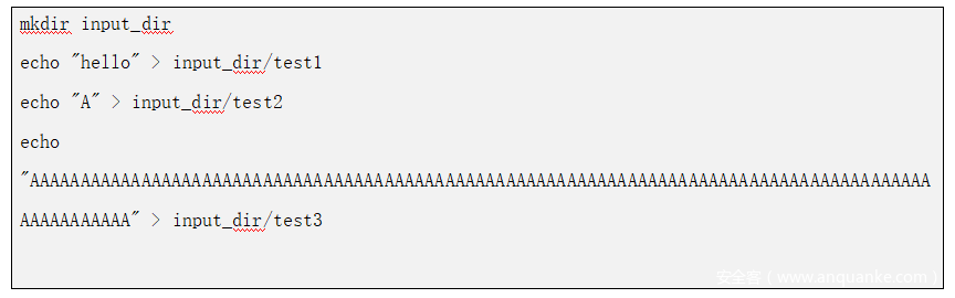 创建一个输入目录,并在其中放置一些初始测试用例。例如: