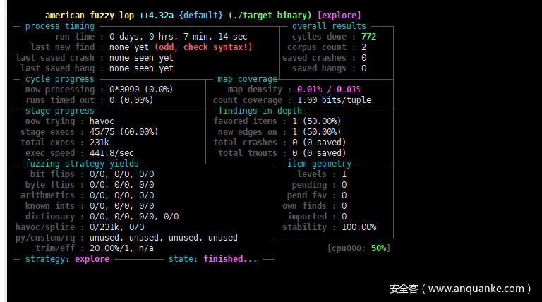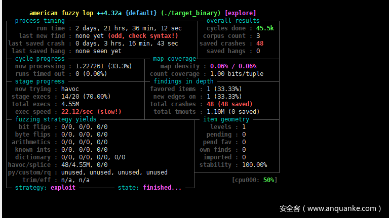 QEMU 模式会在运行时动态插桩,记录代码覆盖率信息,帮助 AFL++ 生成更有效的测试用例。