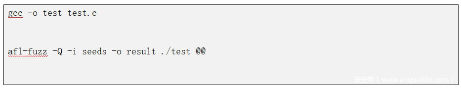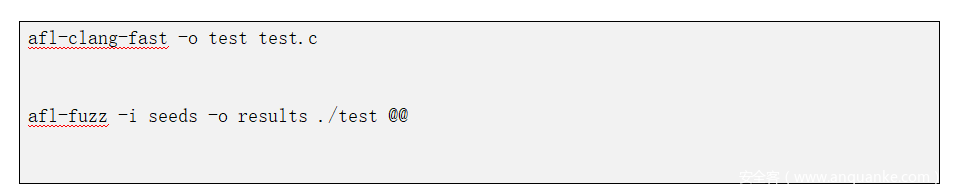 首先使用AFL++ 的编译器 afl-clang-fast 进行编译,编译时插入额外的代码,用于在程序运行时收集执行信息。
