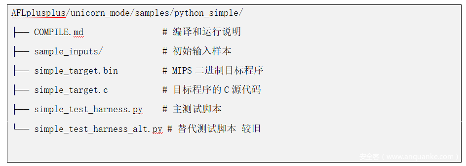 测试程序地址:https://github.com/AFLplusplus/AFLplusplus/tree/stable/unicorn_mode/samples/python_simple