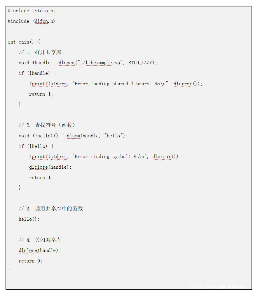 dlopen 和 dlsym:用于动态加载共享库并调用已知函数,但无法直接读取函数名和参数类型。