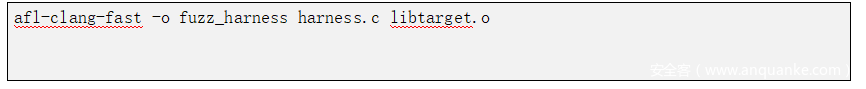 将测试驱动和目标二进制文件链接在一起,并使用 AFL++ 的编译器进行插桩: