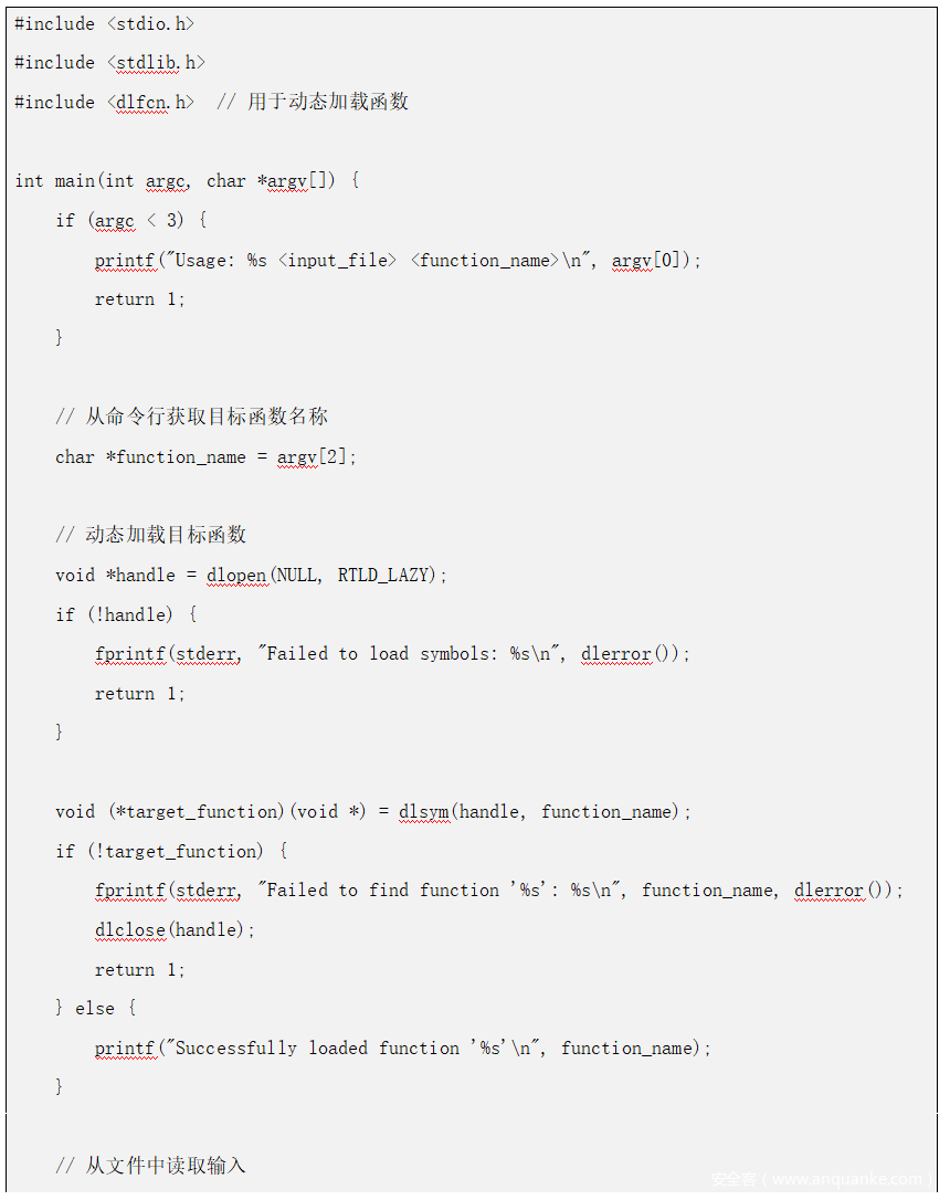 要将目标函数通过命令行传入,而不是在代码中硬编码 unknown_function,通过命令行参数传递目标函数的名称,并使用函数指针来调用它。