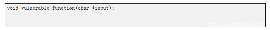 二进制文件 libtarget.o ,其中包含一个函数 vulnerable_function,其签名为: