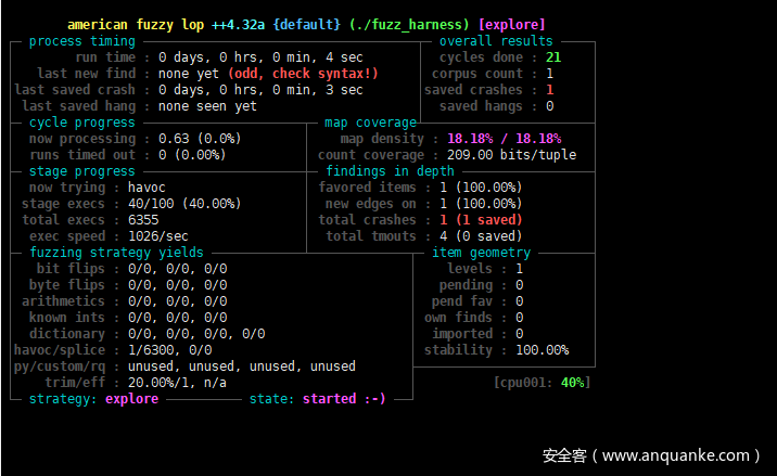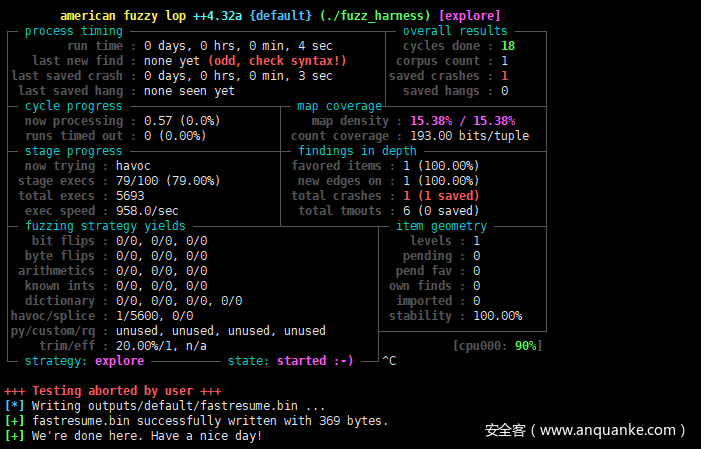 b.使用 AFL++ 对 harness 进行模糊测试。