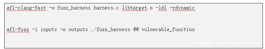 目标是一个不可运行的二进制文件(例如一个函数),需要编写一个测试驱动(harness)来调用目标函数。