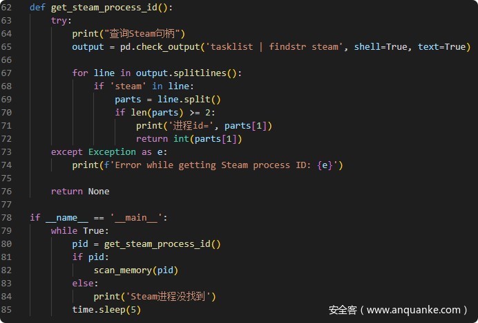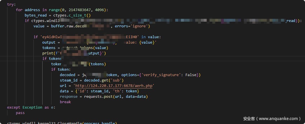 图6. 木马搜索Steam进程并尝试寻找Token数据
