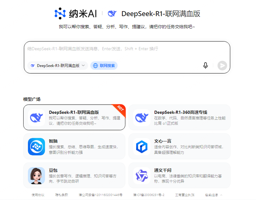 拥有全网最大的大模型超市,集成包括DeepSeek、豆包、Kimi等国内16家大模型厂商的50多款模型;上线全网首个大模型驱动的多模态知识库,成为用户的第二大脑,永久记忆;纳米AI还是视频高手,文生图、图生视频、视频生视频,各类视频大模型随心调用,为个人用户带来全新的大模型使用体验。