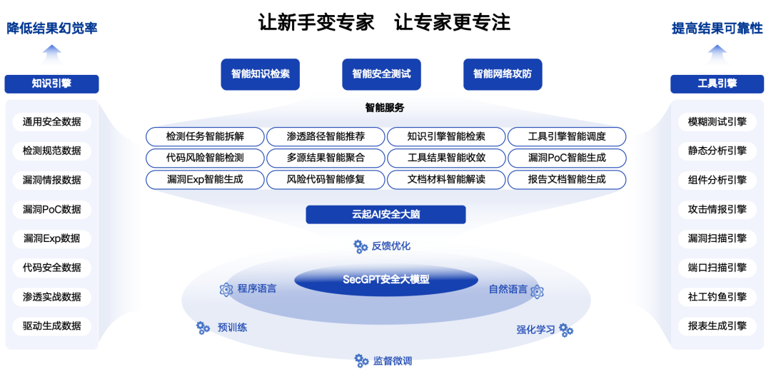 在“云起AI安全大脑”体系中,SecGPT是整个系统的统一语言理解与推理核心。