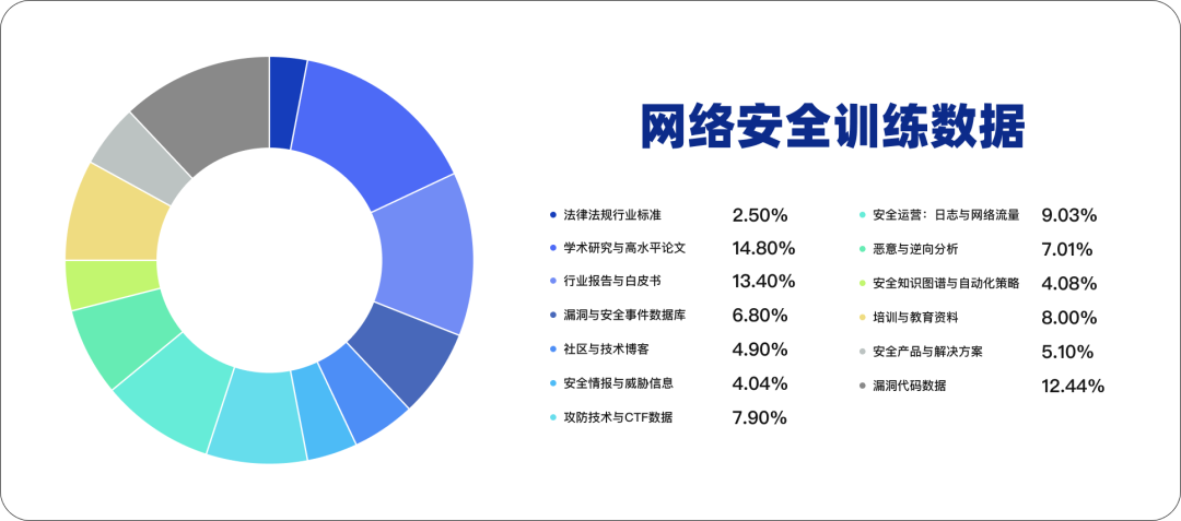 l实战对抗:包括漏洞详情、CTF题库、日志流量、恶意样本与逆向分析等数据,提升模型对真实攻击行为的识别与追踪能力;