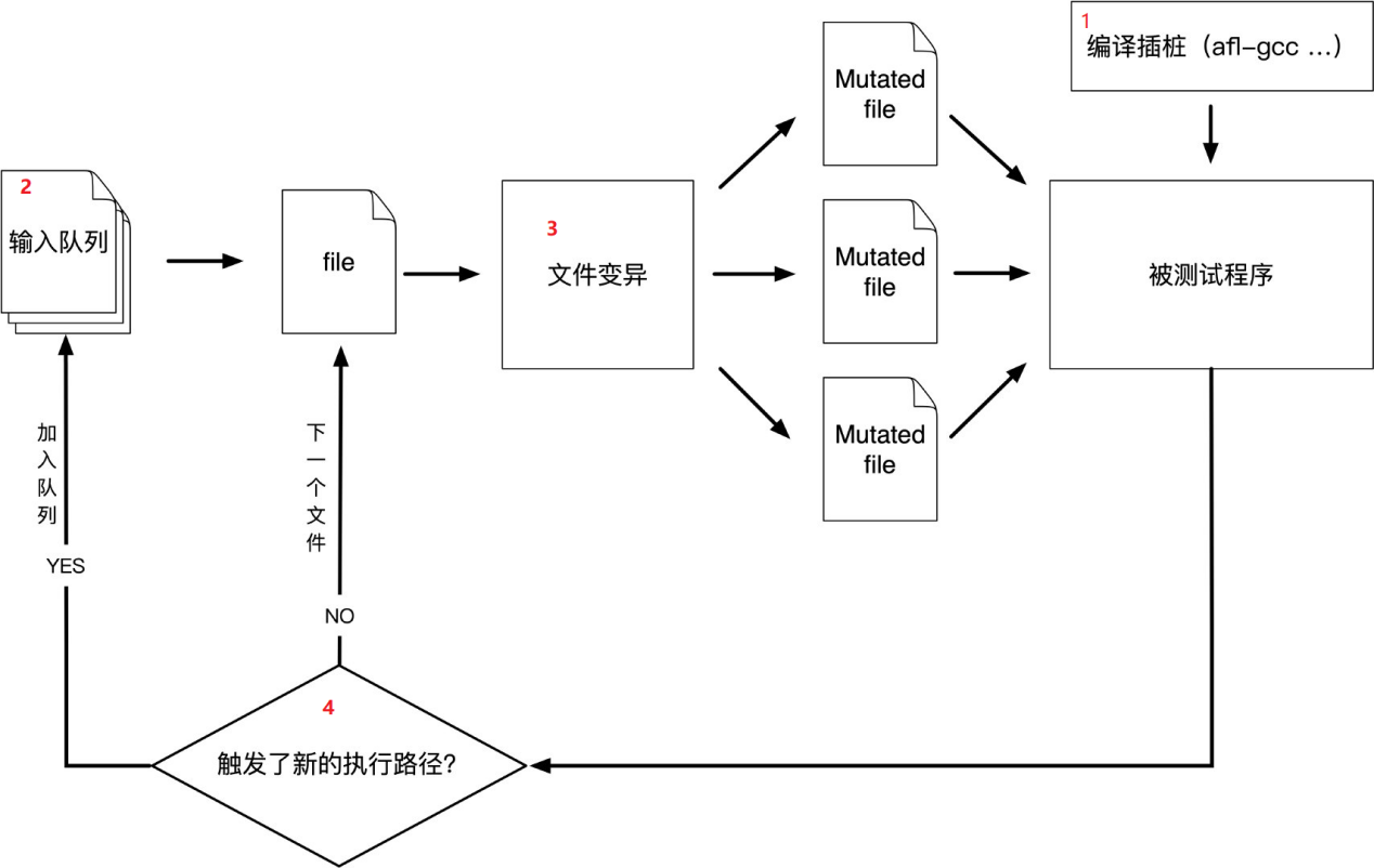 现代灰盒模糊测试(以AFL为代表)的典型工作流程: