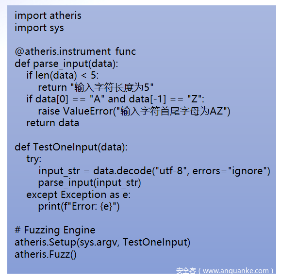 Atheris通过生成随机输入数据来测试程序,以发现可能存在的安全问题。