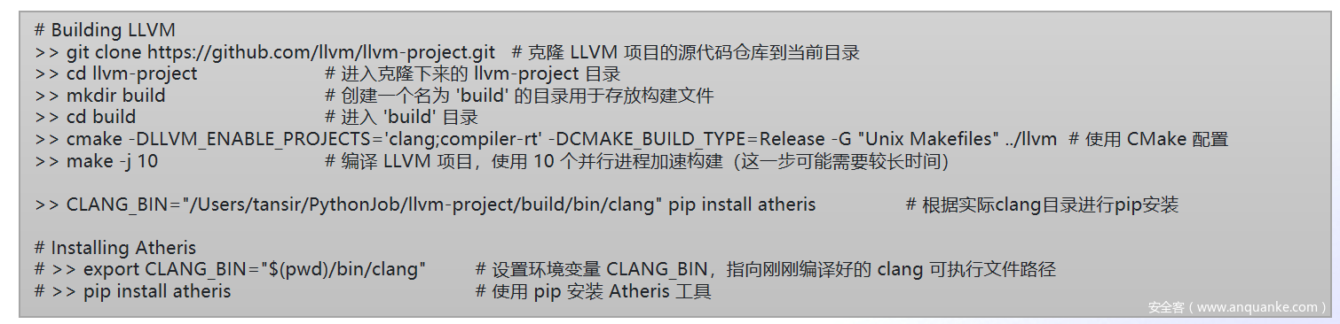 注意: Atheris 依赖于 libFuzzer,它与 Clang 一起分发。因此系统中需要安装足够新的版本clang