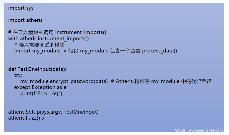 Atheris是Google开发的模糊测试框架专为C++和Python代码设计,用于发现