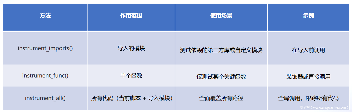 作用:全局仪器化所有代码(包括当前脚本和所有导入的模块)。
