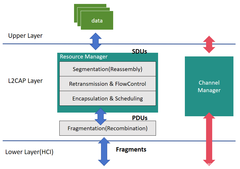 L2CAP是蓝牙协议栈的核心协议层,主要功能包括: