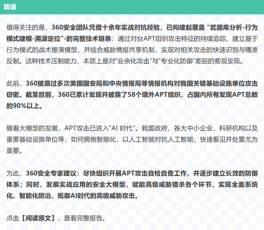 尽管这些台APT组织在攻击目标、技战术和活动周期性规律上各有差异,但其行动逻辑高度服务于“倚外谋独”的政治诉求,其根本目的在于破坏社会公共秩序、蓄意制造混乱。