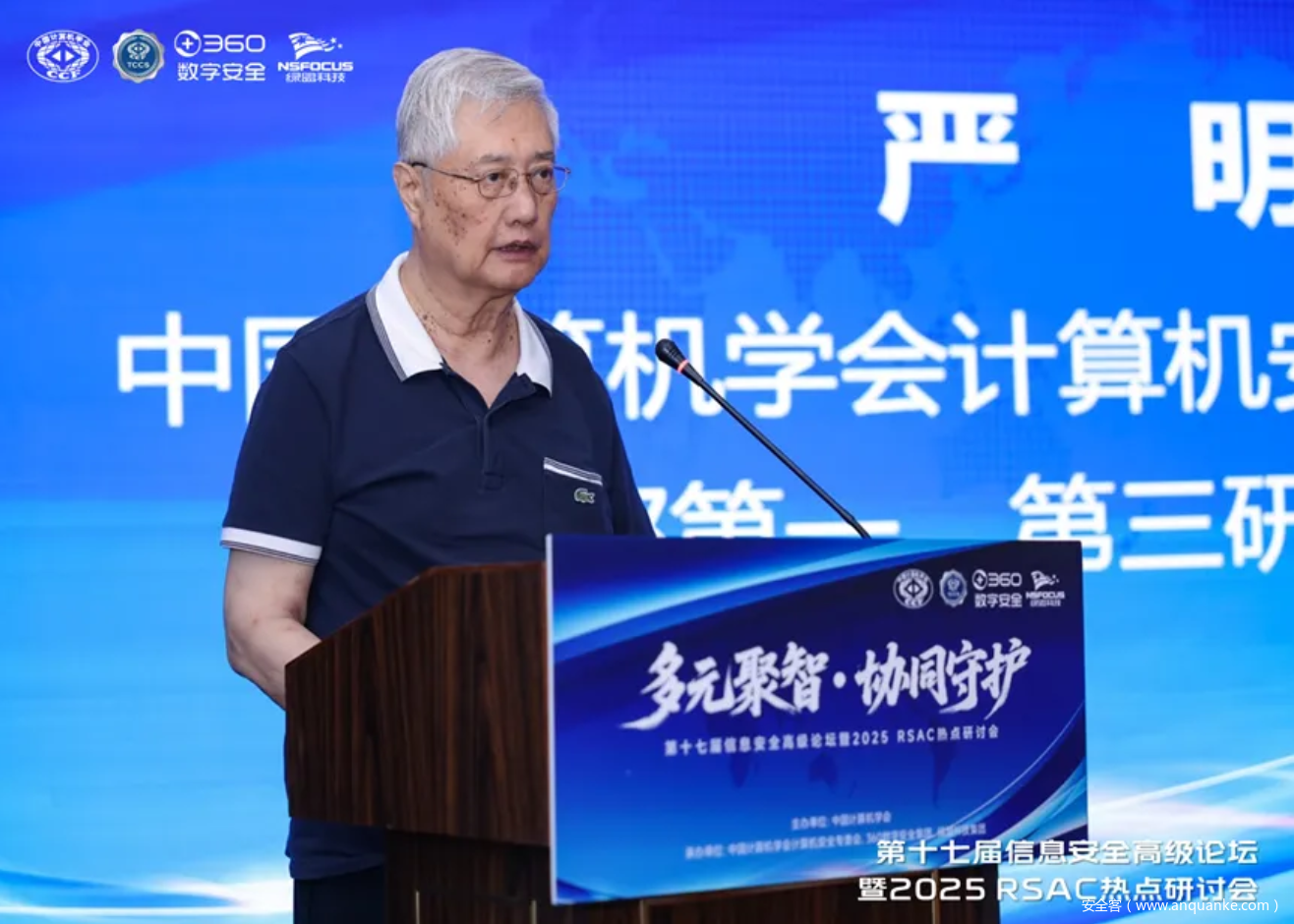 中国计算机学会计算机安全专委会主任、公安部第一、第三研究所原所长严明为论坛致辞。他山之石可以攻玉,严明主任指出,我们的信息化已经从“跟跑”发展到“并跑”,但是我们还必须注意吸取和学习国外先进的技术和理念,参与RSAC会议的交流,注意了解国际信息安全的新动向和新发展,吸取对我们有益的实践经验和思路始终是我们不断发展的需要。严明主任倡议,让我们以“守护者”的姿态,在不断的学习和自主创新中坚守安全防线,平衡好安全与发展的关系,在不断革新的网络与信息化生态中协同发展为中华复兴做出贡献。